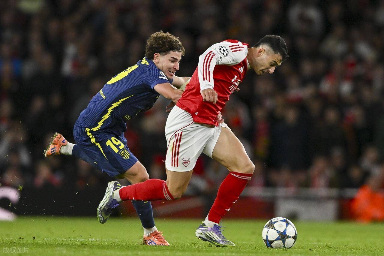 尤其是加布里埃尔的进球,堪称一场经典的战术示范。这个进球的完成源于他与赖斯之间的默契配合,定位球的精度和抢点的精准度让人叹为观止。加布里埃尔的动作优雅流畅,仿佛在进行热身,既简洁又完美。正如德国的胡梅尔斯也曾有过类似的进球,他的动作同样充满艺术感。阿森纳的定位球战术无疑已经成为英超乃至欧冠比赛中的标杆。