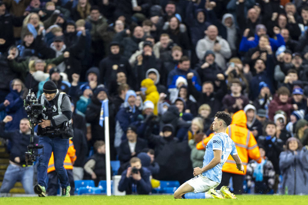 高清:英超曼城3-2利兹联 福登绝杀滑跪庆祝